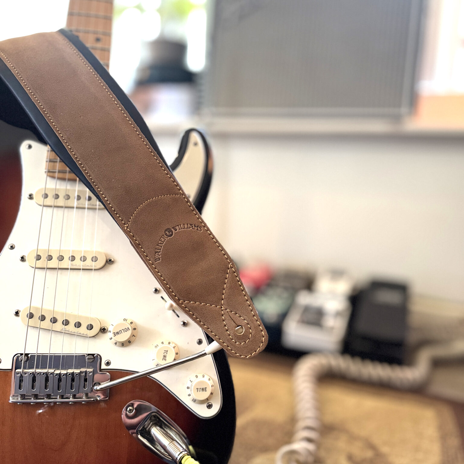 10 Published August 20, 2025 at 2048 × 2048 in C-22-SB New Brown Roughout Handmade Soft Signature Suede Leather 3″ Wide Guitar Strap ← Previous Next →