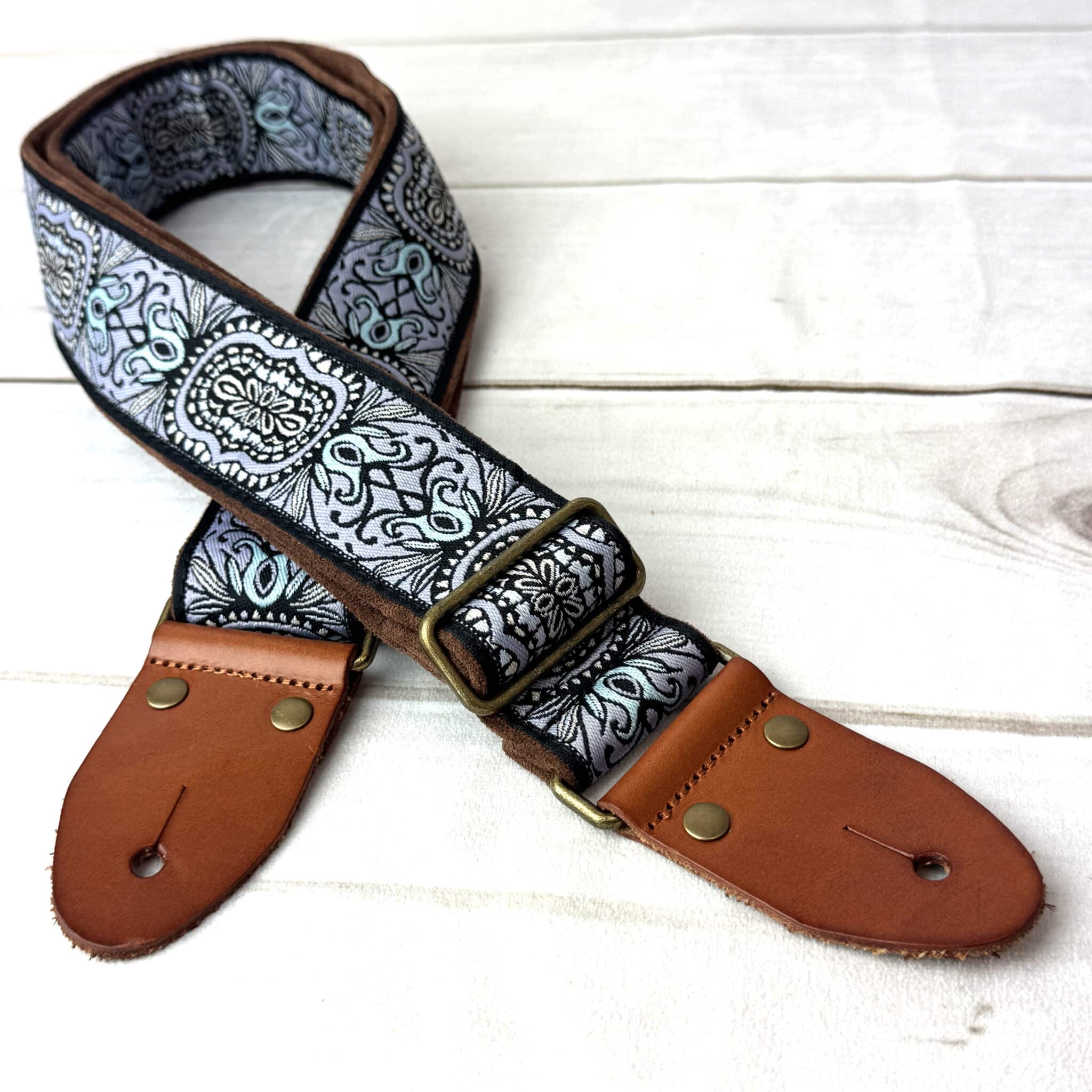 OOAK-3346 Violet And Sky Blue Water Lily Plush Back Premium Woven Strap